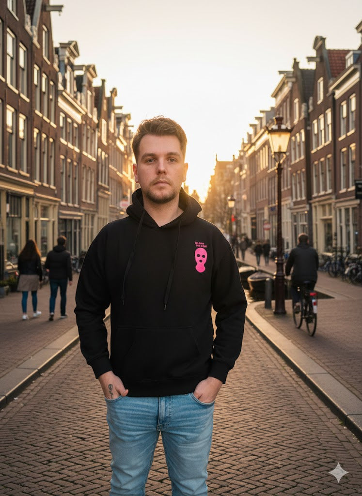 Deze zwarte hoodie met roze backprint combineert comfort en karakter. Gemaakt van 65% katoen en 35% polyester, voelt hij zacht aan en is hij duurzaam in gebruik. Voorzien van een klassieke buidelzak aan de voorkant en een relaxte pasvorm — perfect voor een casual streetwear look.