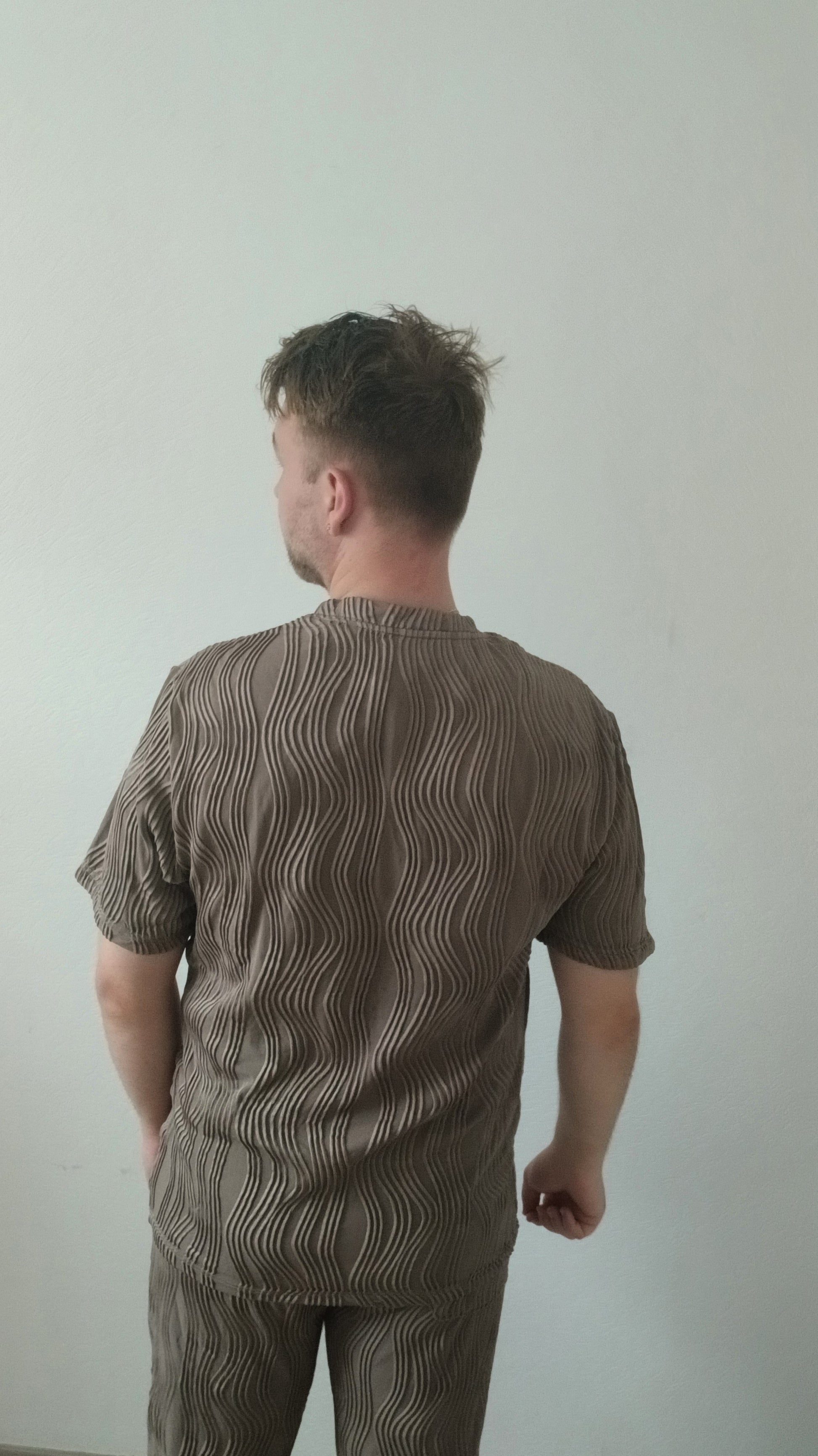 Maak kennis met de Wave Texture Co-Ord Set – het perfecte balans tussen comfort en stijl. Deze set bestaat uit een relaxed fit T-shirt en een bijpassende joggingbroek, beide uitgevoerd in een unieke 3D-golvenstructuur. De mocha bruine kleur zorgt voor een luxe en moderne uitstraling, terwijl de polyester/elastane blend zorgt voor een soepele pasvorm met lichte stretch.